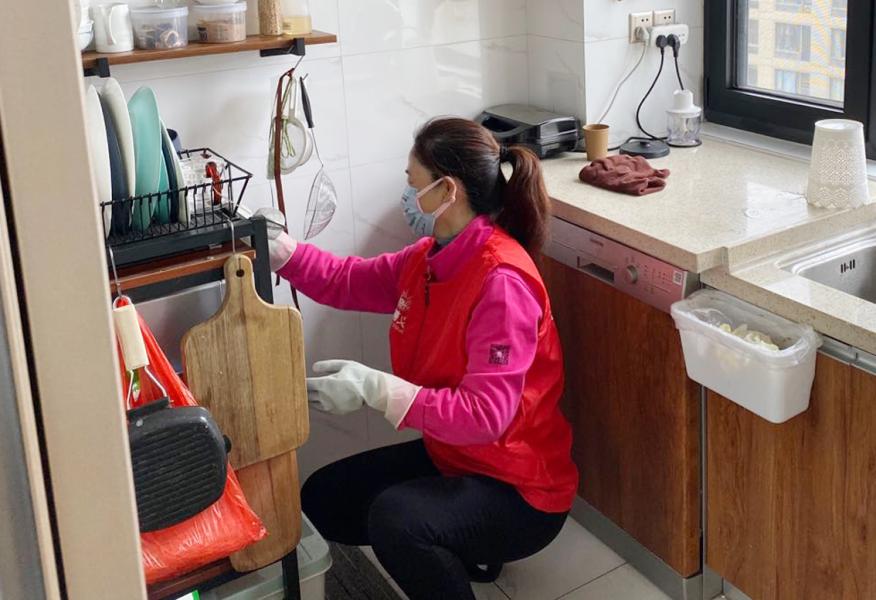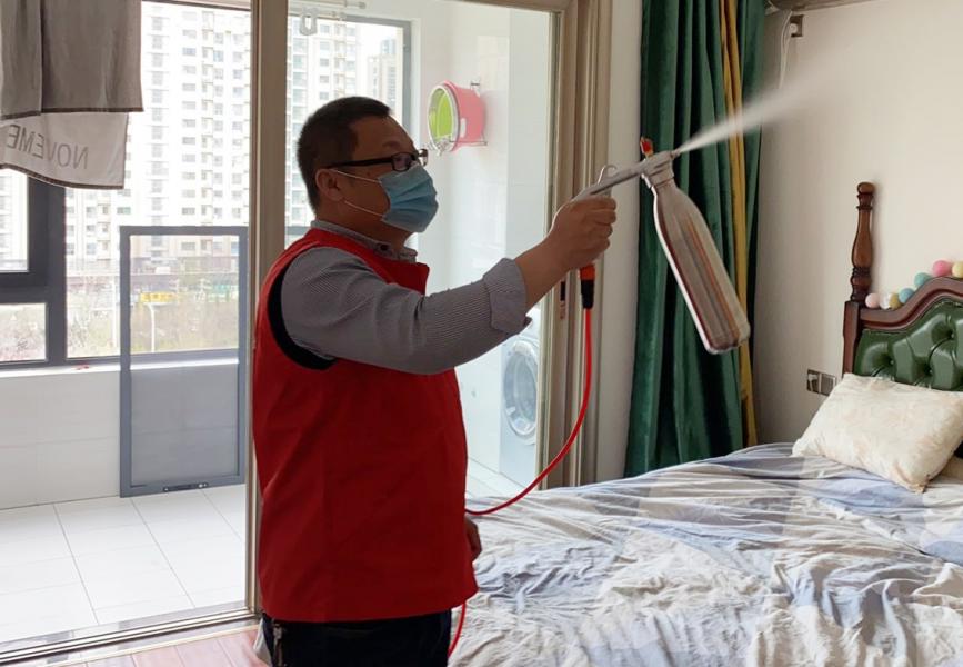 ? 清晨志愿者們帶著保潔工具和空氣消殺設(shè)備趕到援鄂醫(yī)護人員家庭進行服務(wù),她們不怕臟不怕累,登高爬梯仔細打掃每一個角落,用二氧化氯及冷霧化彌漫機對家庭進行全覆蓋、無死角預(yù)防消毒。