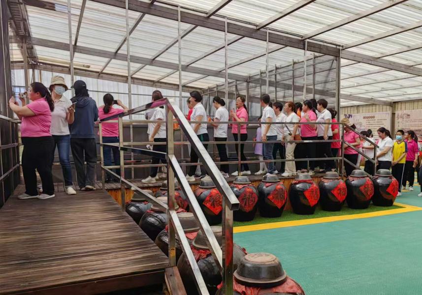? ? ? ?到達(dá)環(huán)球釀造廠后,職工們首先來到環(huán)球釀造廠園區(qū)內(nèi),在工作人員的講解下參觀了解了古法醬油、醋的制作工藝,零距離接觸翻曬醬油的古法醬園,感受兩千五百噸的日曬醋海,領(lǐng)略中華傳統(tǒng)美食文化釀造流程,探究醬醋文化的起源和工藝?;顒又?,大家還品嘗到了日曬五糧窖香醋、原汁日曬濁醬油、甜面醬,紛紛表示意猶未盡。