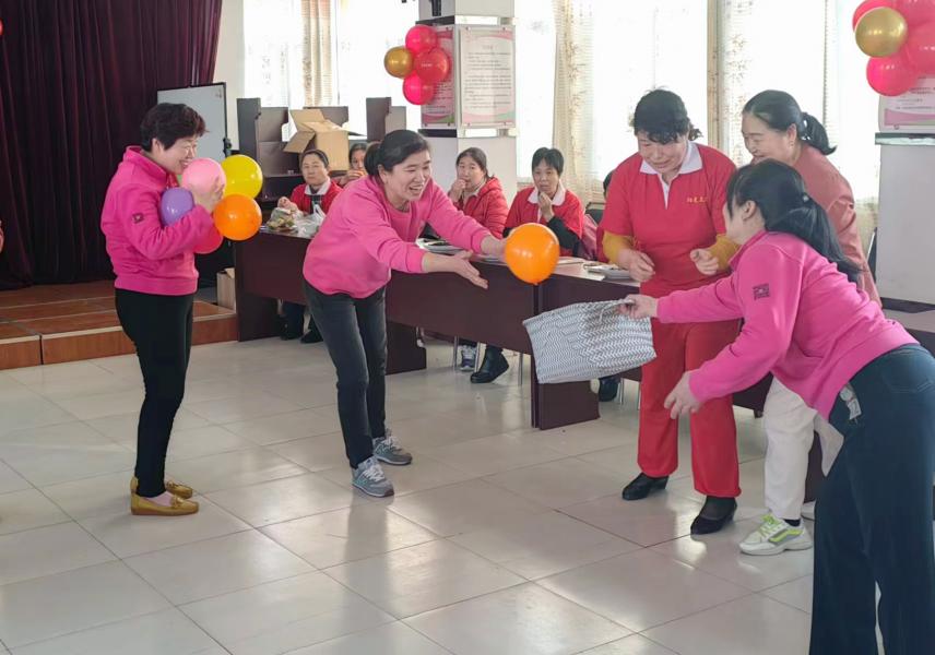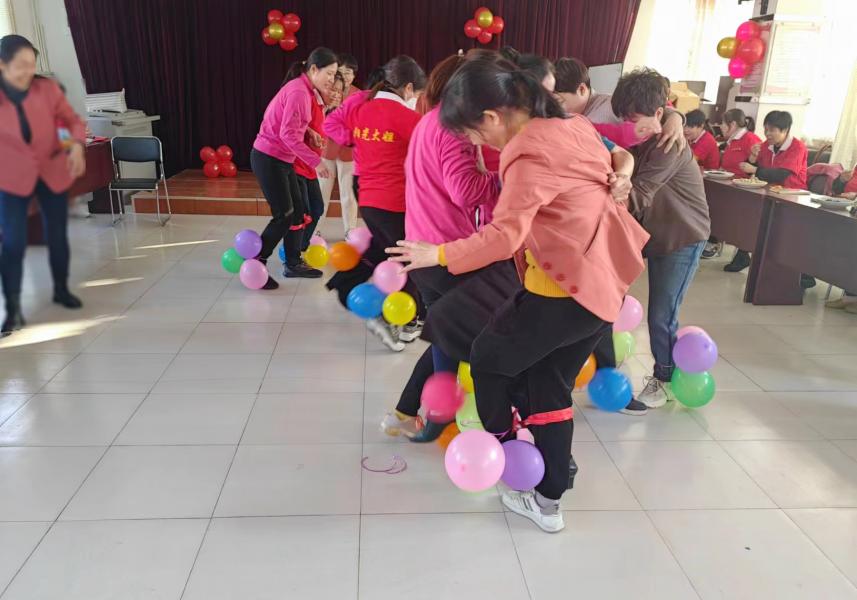 ? ? ? ?隨后進行聯(lián)歡活動,大姐們載歌載舞慶祝自己的節(jié)日。趣味小游戲有“踩氣球”、“疊報紙”、“拋繡球”、“雙龍戲珠”等項目。在游戲中,參賽選手充分發(fā)揚團結協(xié)作、積極向上的精神,全身心投入到比賽中。整個聯(lián)歡過程緊張激烈又趣味橫生,現(xiàn)場熱鬧非凡,氣氛活躍。