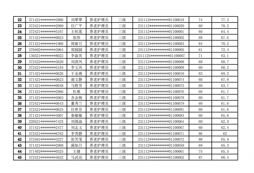 德州陽(yáng)光大姐家政職業(yè)培訓(xùn)學(xué)校20231112期社會(huì)職業(yè)技能等級(jí)認(rèn)定成績(jī)公示