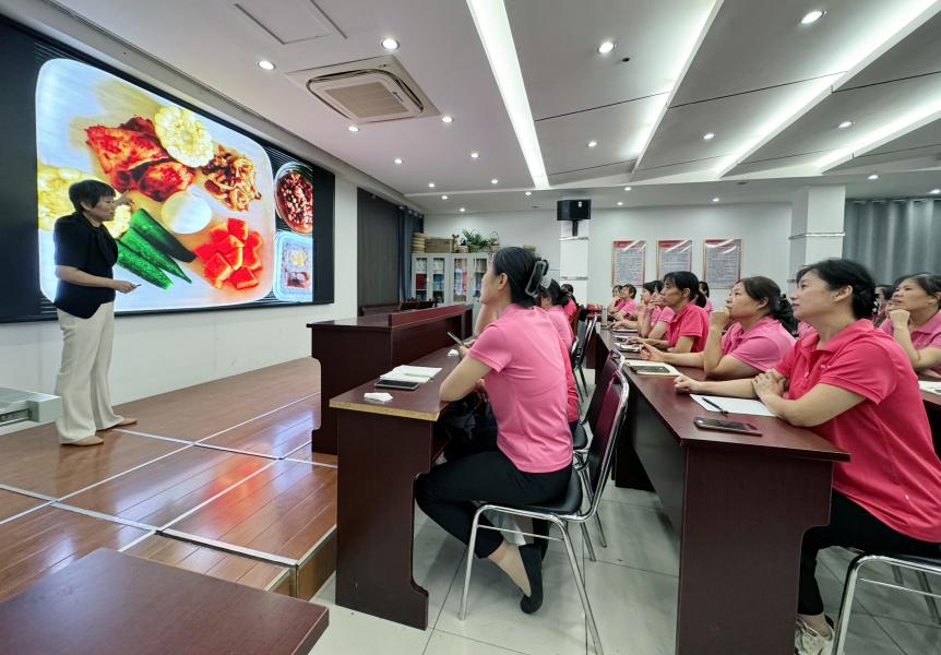為增強(qiáng)家政從業(yè)人員營養(yǎng)膳食的理念和知識(shí),提升職業(yè)化水平,為用戶提供更專業(yè)、更健康的服務(wù)。9月11日德州陽光大姐特邀國際注冊(cè)營養(yǎng)師、德州市營養(yǎng)協(xié)會(huì)鄭會(huì)長(zhǎng)開展 “引領(lǐng)‘食’尚? 健康賦能”活動(dòng)。公司100余名家政從業(yè)人員參加此次活動(dòng)。