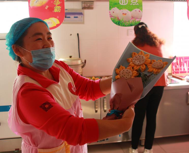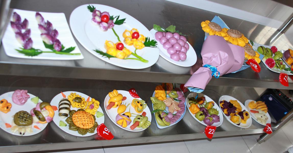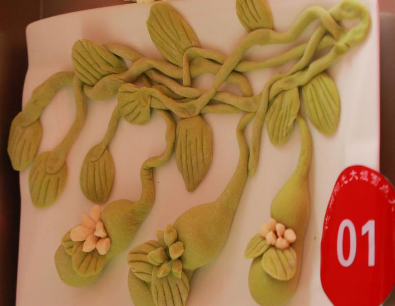 比賽一開始,大姐們就立即投入制作,揉面、剁餡……每一道工序有條不紊進行。制作過程中她們一絲不茍,耐心細致,將一份份精致誘人、創(chuàng)意新穎、美味的面點呈獻在大家面前,有含苞待放的玫瑰卷、軟糯香甜的紫薯卷、惟妙惟肖的小豬、風味獨特的披薩、外焦里嫩的紅豆餅、色香俱全的蒸餃、形象逼真的紅辣椒、茄子、西瓜……大姐們用嫻熟精湛的制作手法做出了一道道令人垂涎欲滴的美味面點,小小的面團在她們手里百般變化,化成一道道舌尖的美味。令在座的評委老師們老師們贊嘆不已!