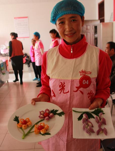 經過近三小時的爭奪,“廚藝大比拼-巧手做面食”廚藝大賽落下帷幕。評委老師將從參賽大姐儀容儀表,所做面食色澤、外形、火候、質地、口味、裝盤7各方面打分。共評出最佳創(chuàng)新獎、最佳營養(yǎng)搭配獎、最具童趣獎、最佳視覺獎、最美味道獎五個獎項。