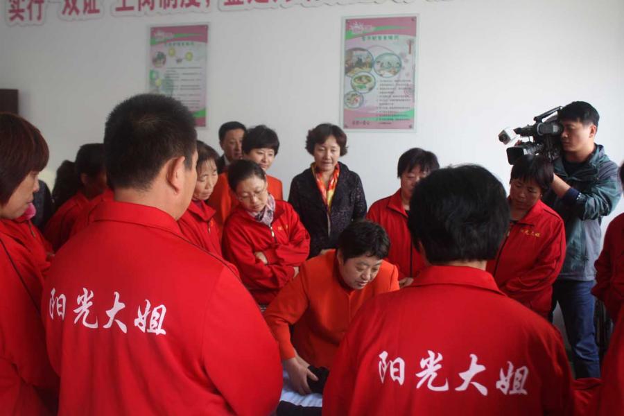 魏艷菊一行來到公司培訓(xùn)室,十幾名家政人員正在接受護(hù)老專業(yè)技能培訓(xùn)。魏艷菊勉勵大家,家政服務(wù)是“陽光”事業(yè),要把它作為一項(xiàng)事業(yè)用心去做。她還叮囑公司負(fù)責(zé)人,要把家政服務(wù)打造成為婦女姐妹塑造自信的舞臺、相知相幫的家園、和諧共贏的基地。