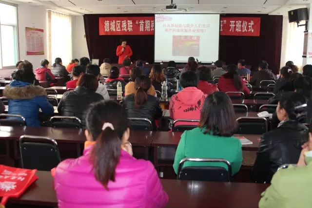 為落實(shí)德州市人民政府關(guān)于《德州市殘疾人“整體趕平均、共同奔小康”行動方案》,促進(jìn)殘疾人就業(yè)創(chuàng)業(yè),德城區(qū)殘疾人聯(lián)合會舉辦,由德州陽光大姐家政職業(yè)培訓(xùn)學(xué)校承辦的德城區(qū)“首屆殘疾人家政服務(wù)技能培訓(xùn)班”于11月5日上午舉行了開班儀式。