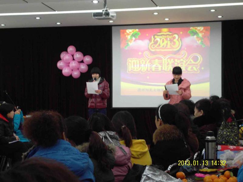 2013年1月13日,陽(yáng)光大姐新春聯(lián)誼會(huì)在三樓多功能廳舉行,大姐們以健美操、太極劍、京劇、手語(yǔ)舞、合唱、情景劇等形式自編自演了節(jié)目,展示了大姐們的風(fēng)采,共同度過(guò)了歡樂(lè)節(jié)日。
