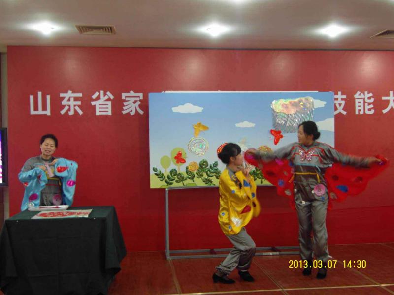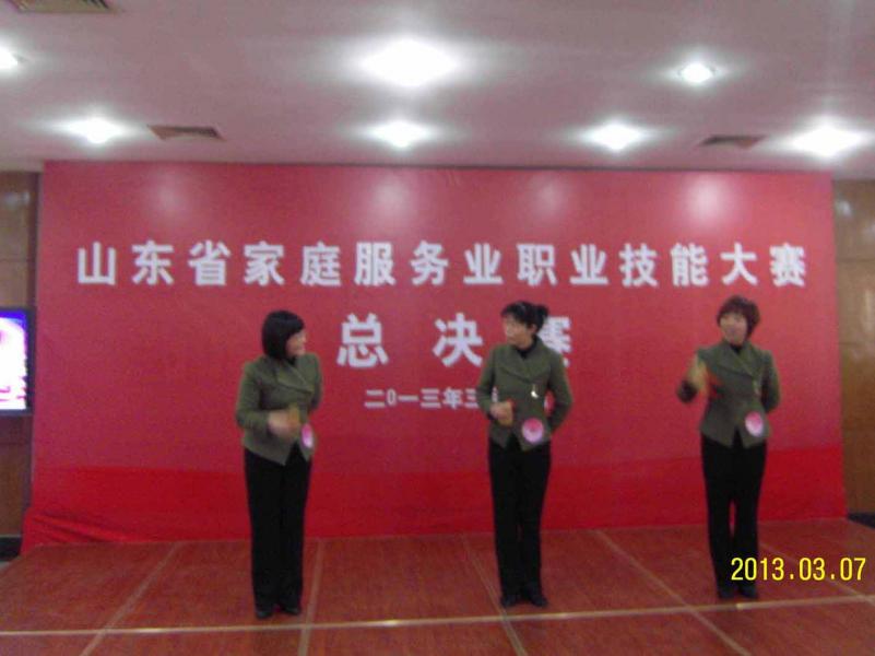 ? ? 山東省家庭服務(wù)業(yè)職業(yè)技能大賽總決賽于3月7日在濟(jì)南舉行,經(jīng)過理論知識(shí)考試、實(shí)際操作比賽、才藝技能展示等環(huán)節(jié)的競(jìng)賽,我公司派出的2支代表隊(duì)分別獲得二、三等獎(jiǎng),選手被授予“山東省家庭服務(wù)能手”榮譽(yù)稱號(hào)。?大姐們展現(xiàn)了家庭服務(wù)員精湛的職業(yè)技能、良好的精神狀態(tài)、和諧的團(tuán)隊(duì)精神,為公司爭(zhēng)得了榮譽(yù)。
